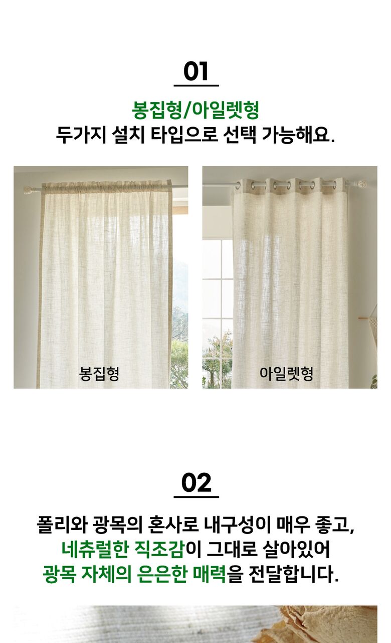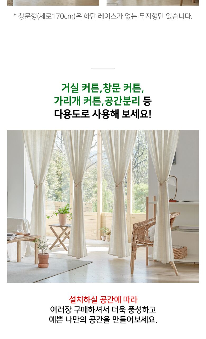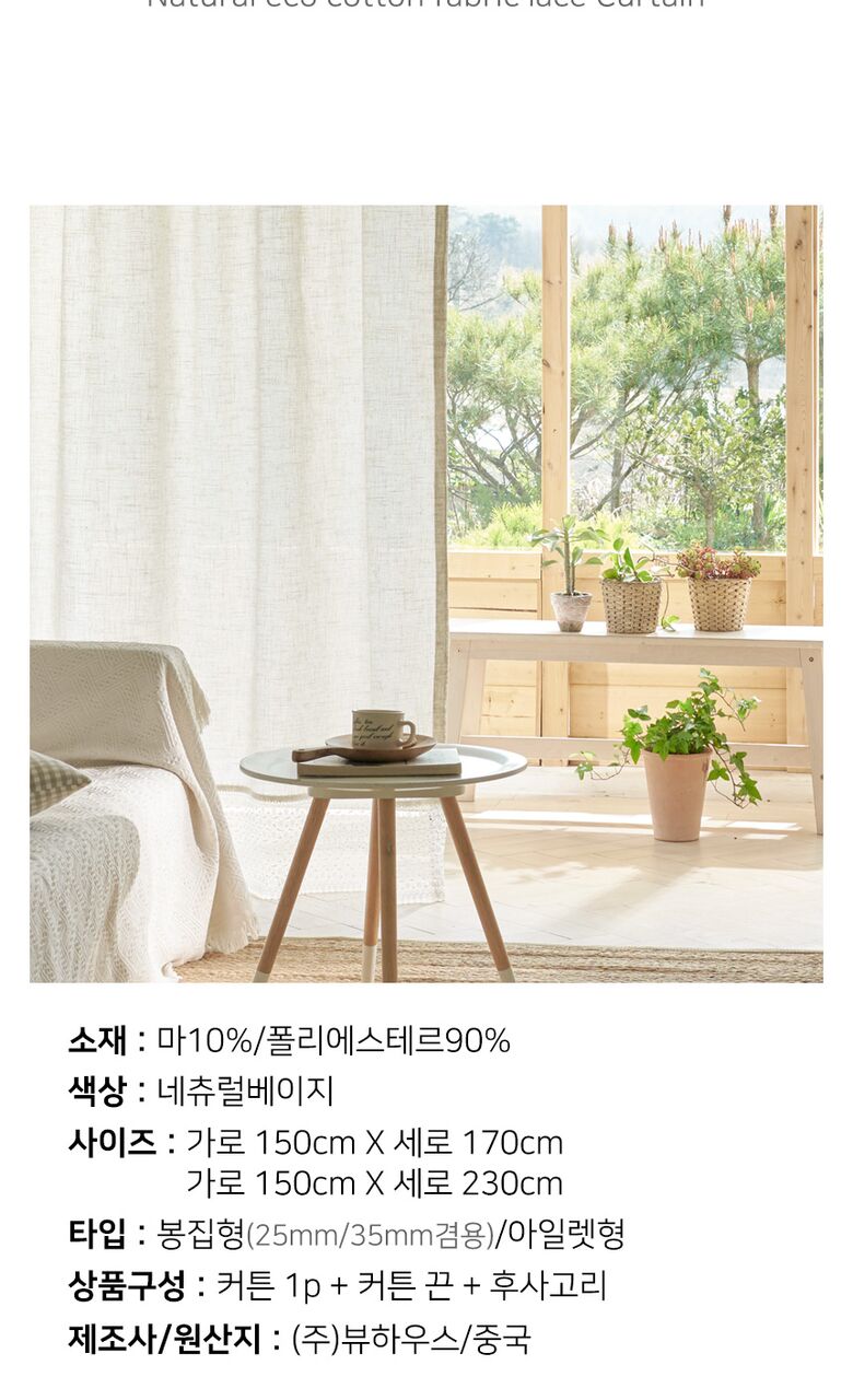 [뷰하우스]네츄럴 에코 광목 무지 린넨 커튼 창문형