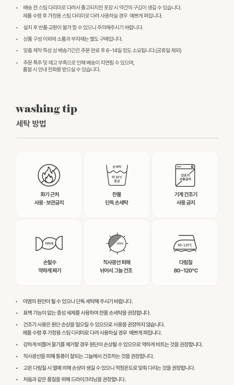 | 세탁방법, 취급시 주의사항 | 상세페이지 참고 |