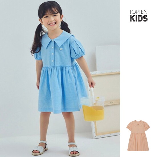 선택12 [탑텐키즈] 여아) 시어서커 빅카라 반팔 우븐 원피스 MKF2OO2111