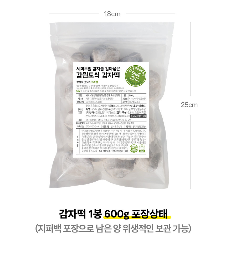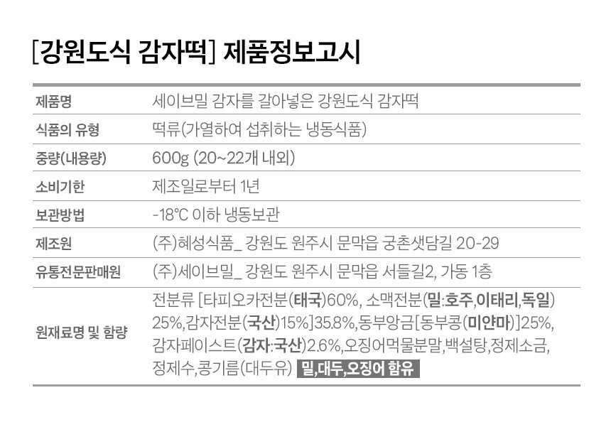 | 제품명 | 세이브밀 감자를 갈아넣은 강원도식 감자떡 |