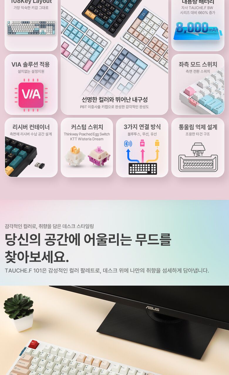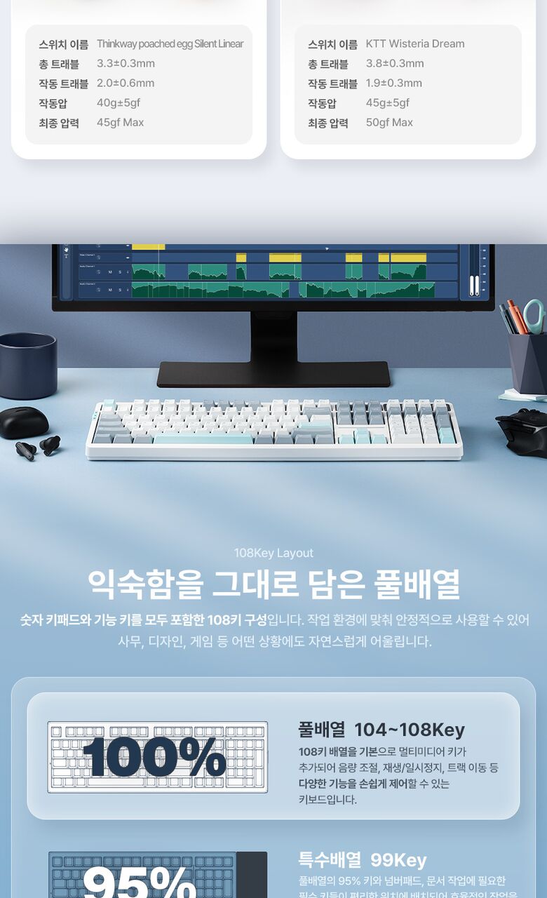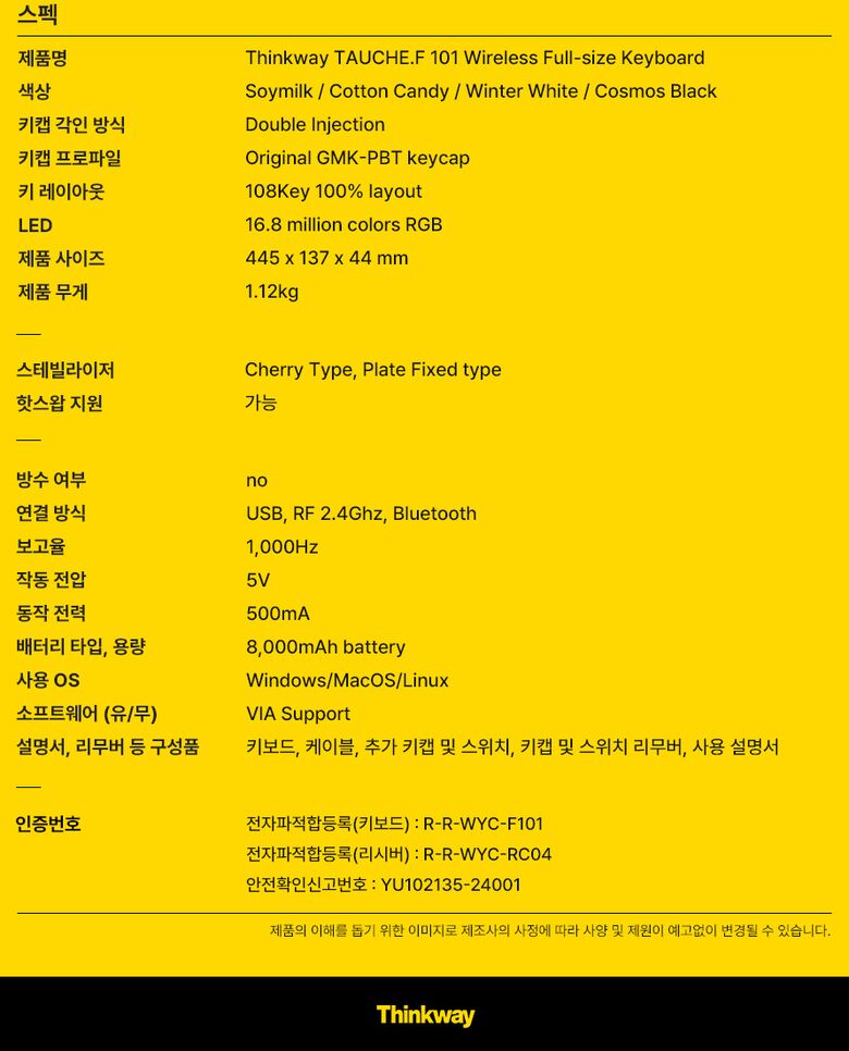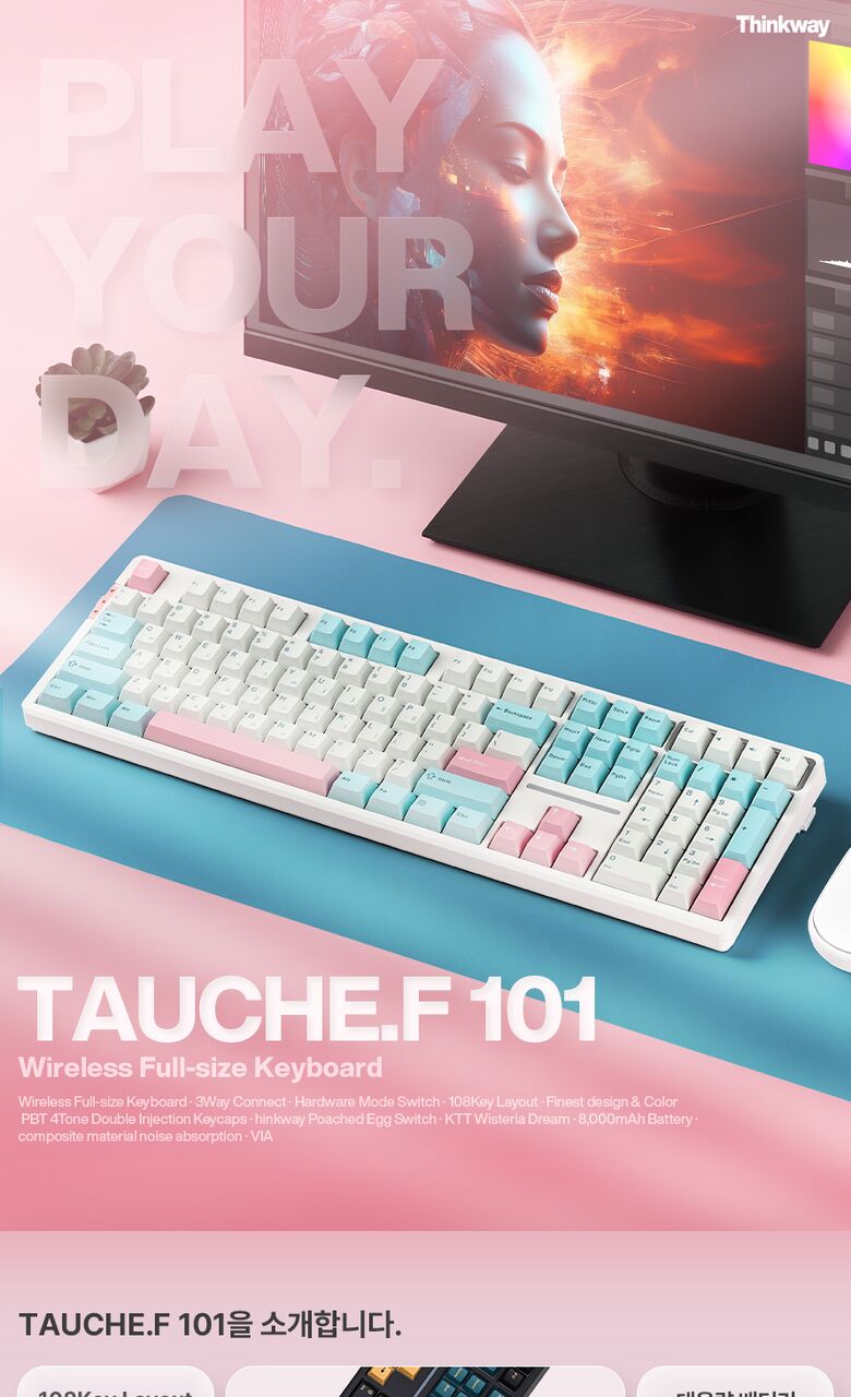[씽크웨이]씽크웨이 토체프 101 108키 기계식 유무선 키보드 코스모스블랙 위스테리아 드림축