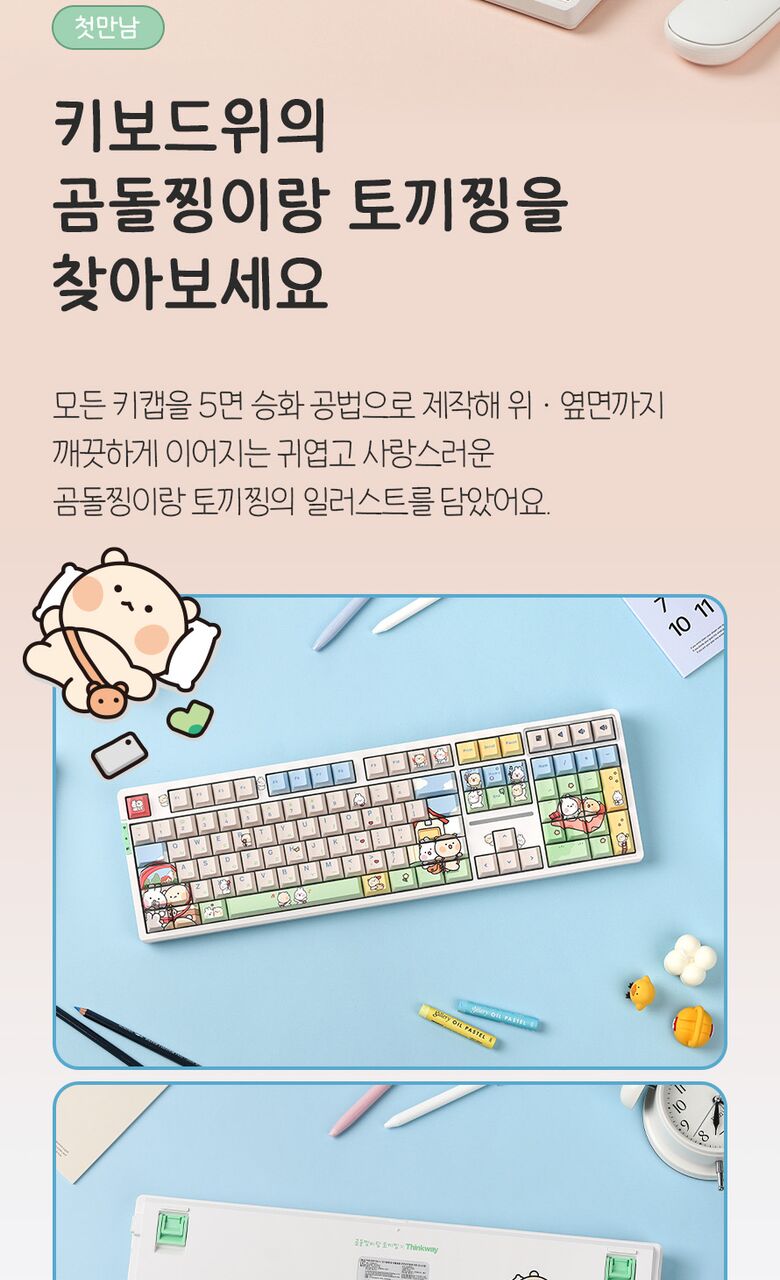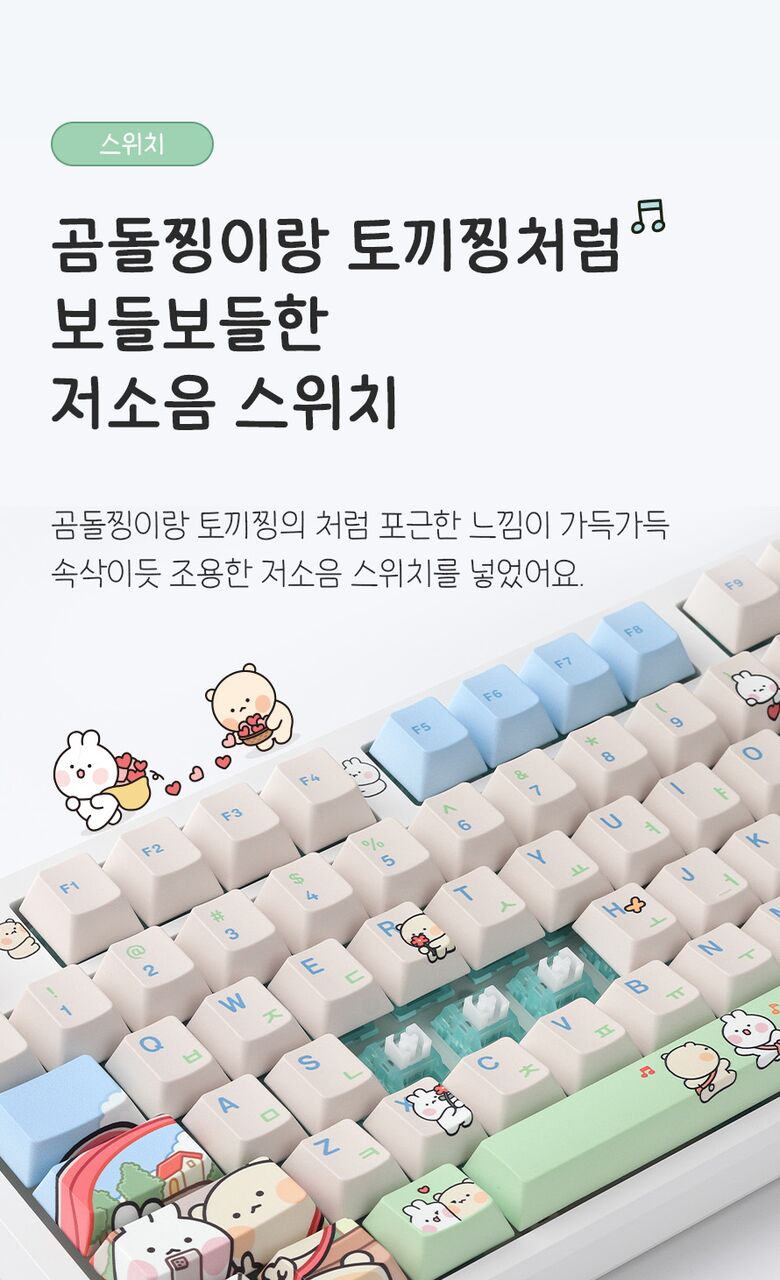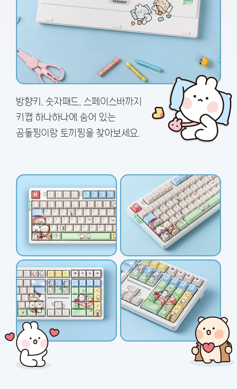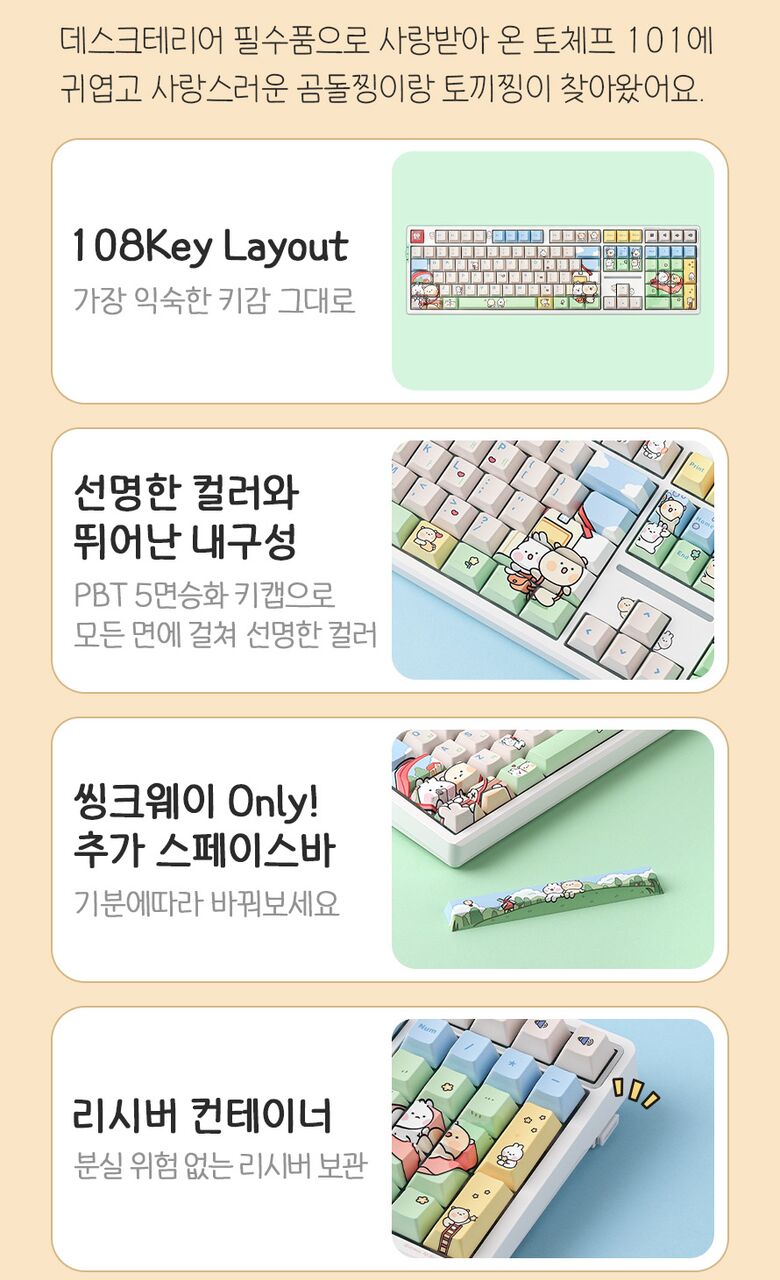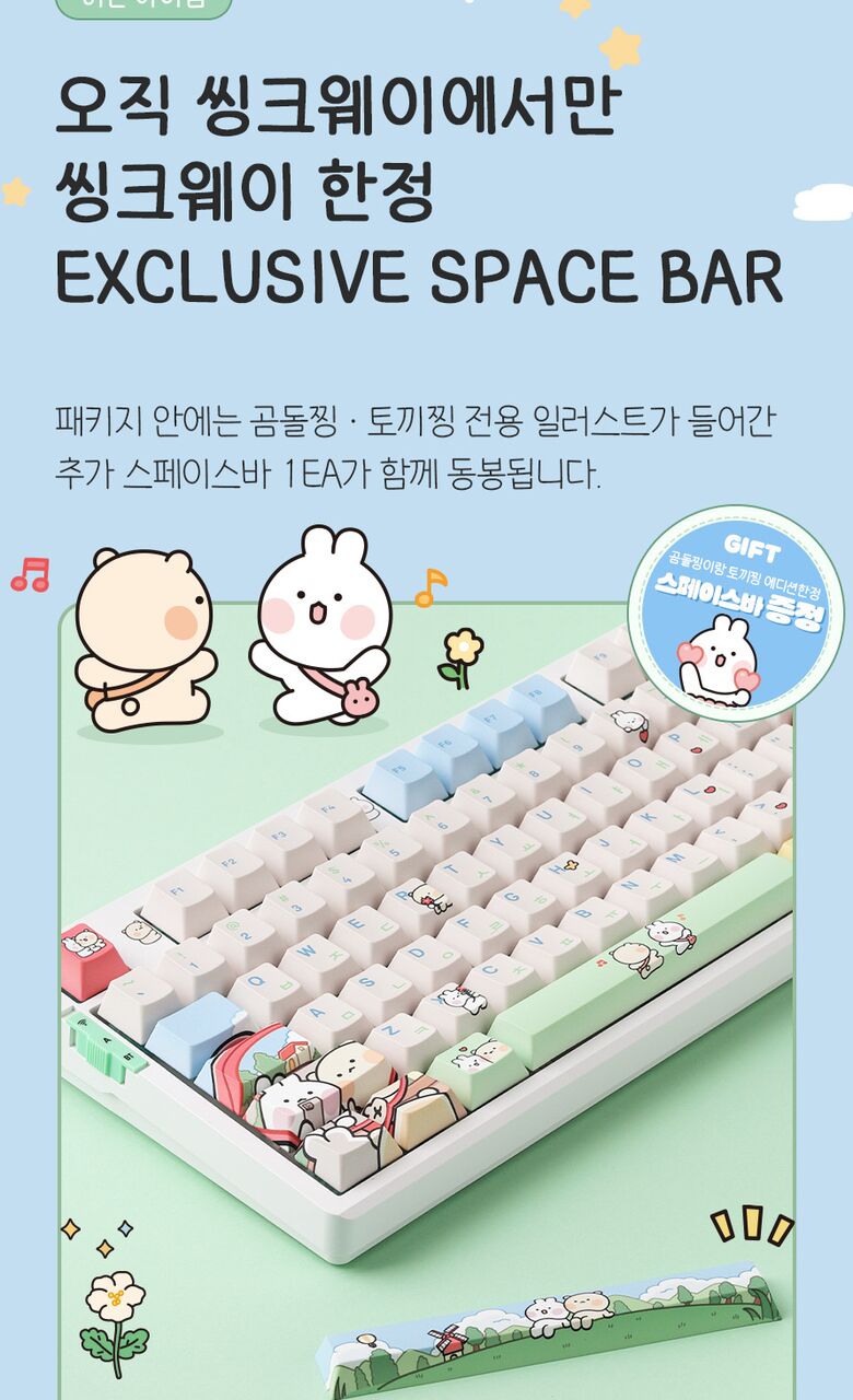 [씽크웨이]씽크웨이 토체프 101 108키 기계식 유무선 키보드 곰돌찡이랑 토끼찡 에디션