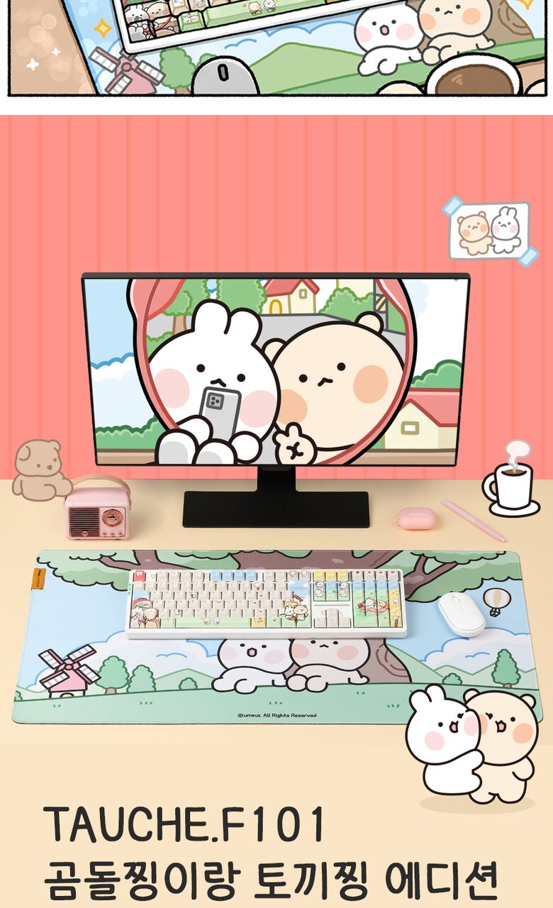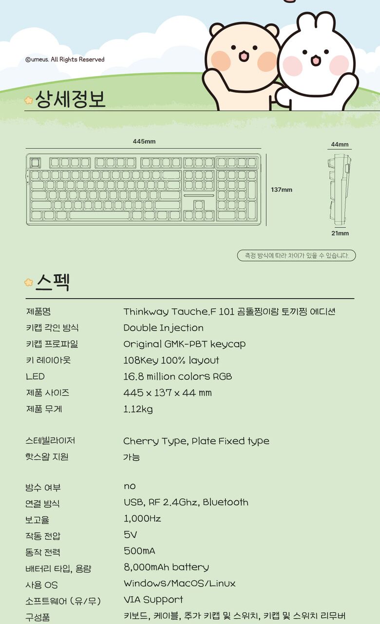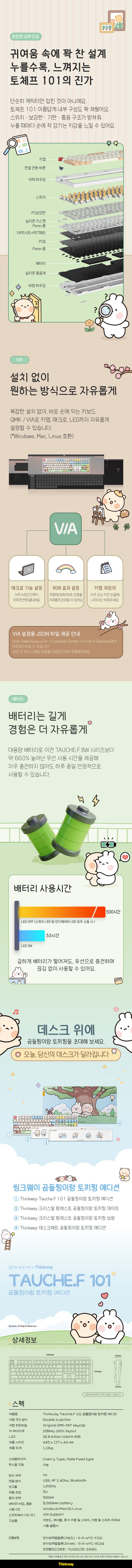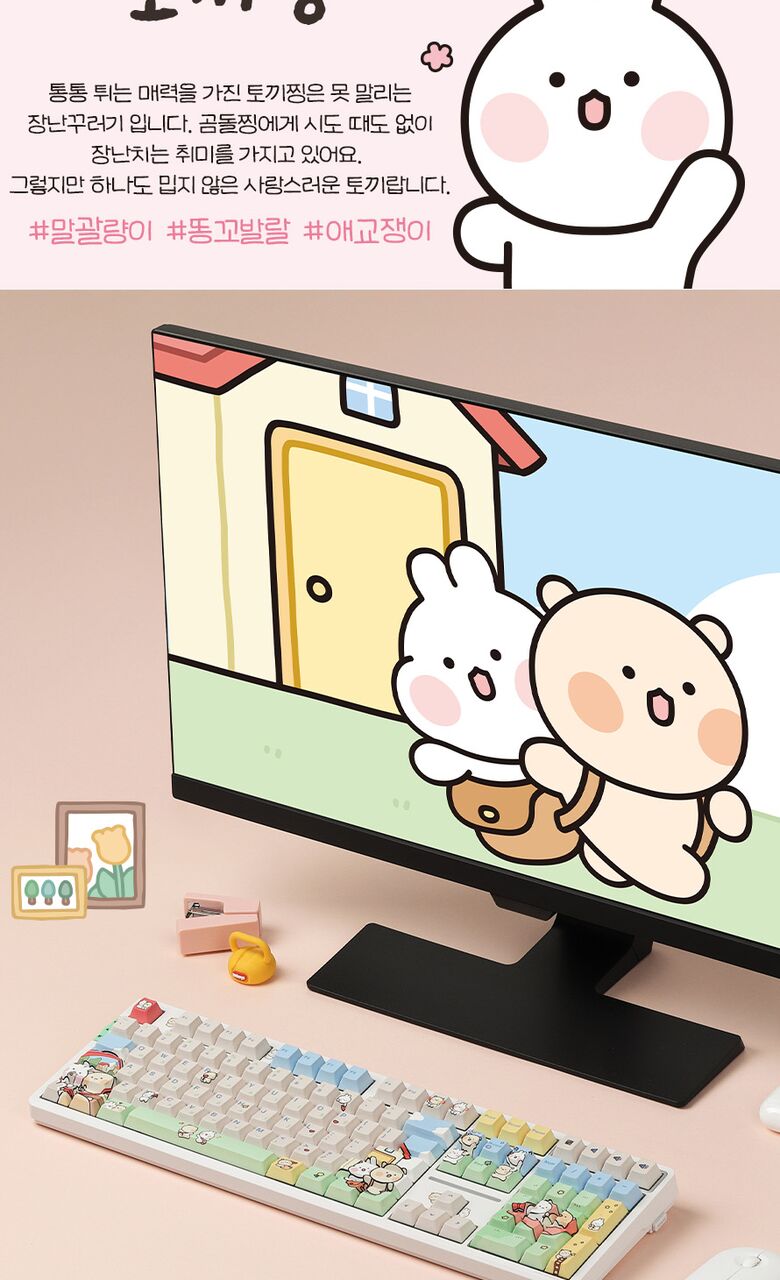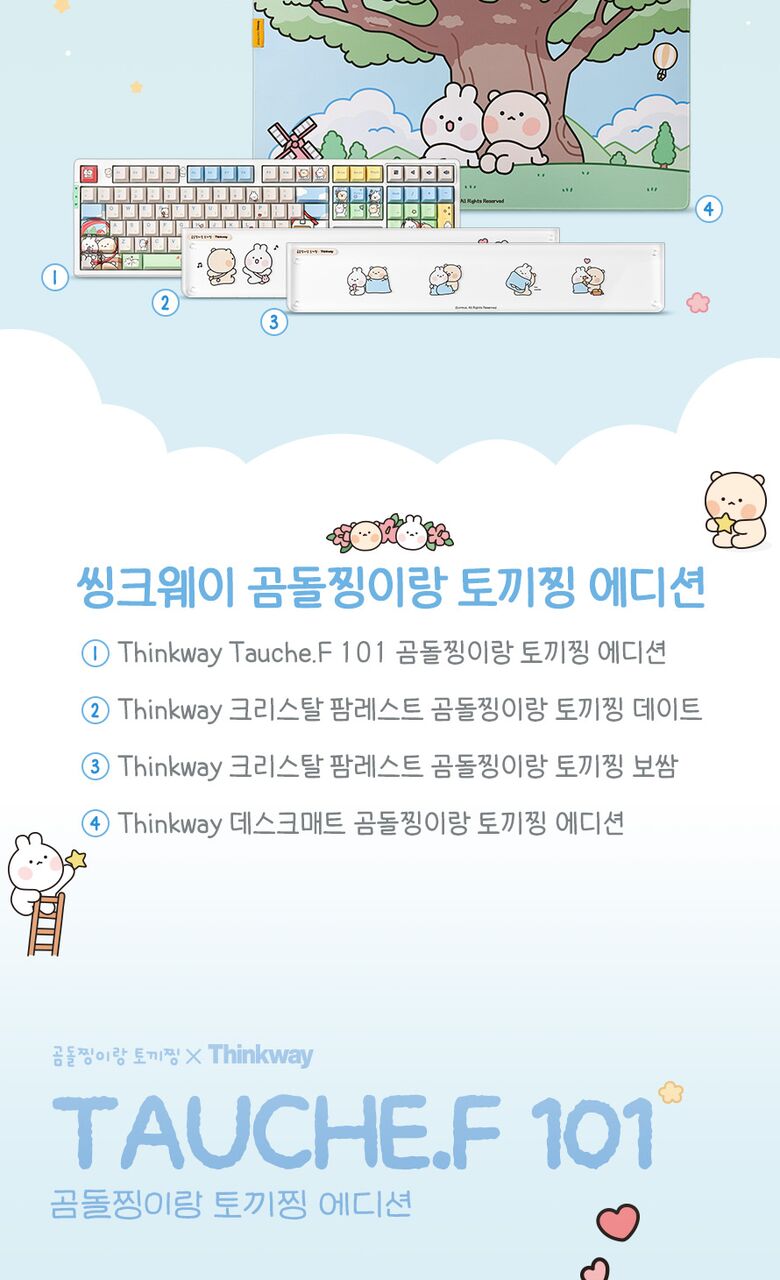 [씽크웨이]씽크웨이 토체프 101 108키 기계식 유무선 키보드 곰돌찡이랑 토끼찡 에디션