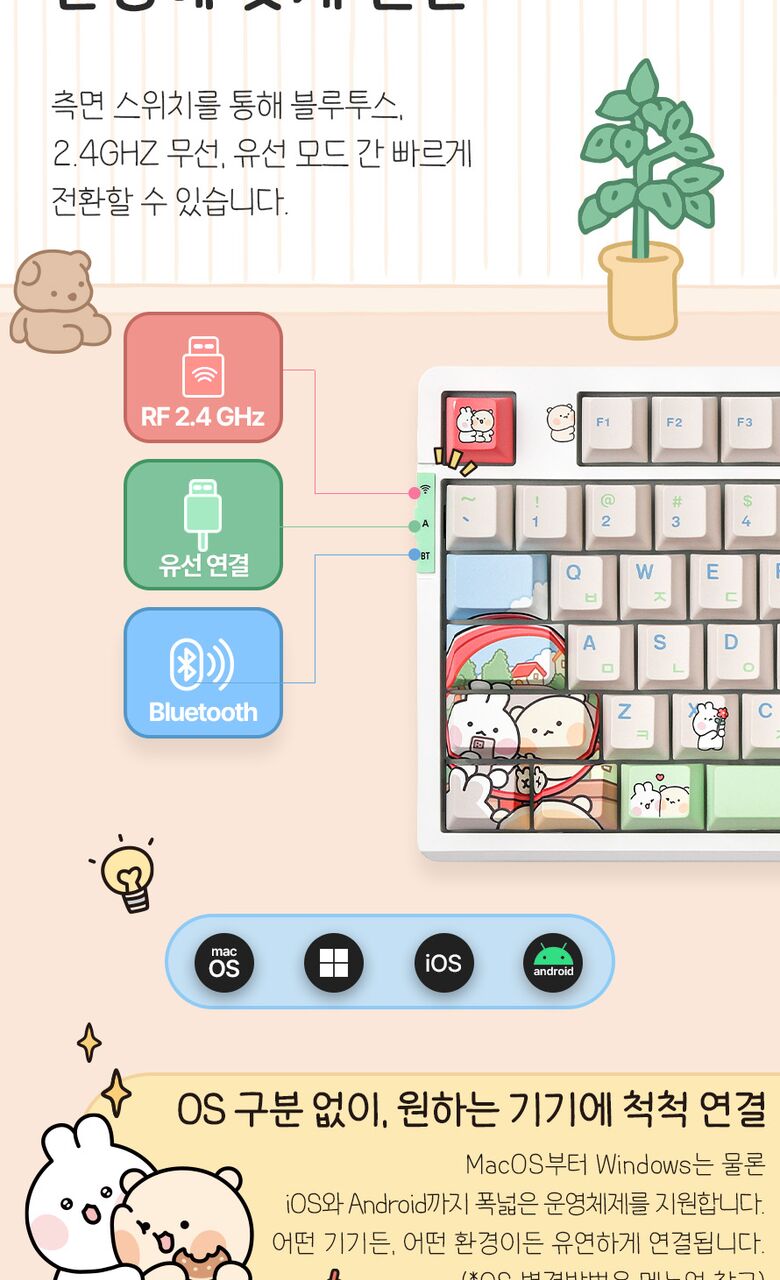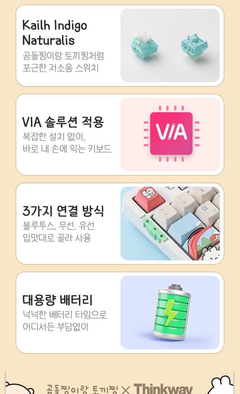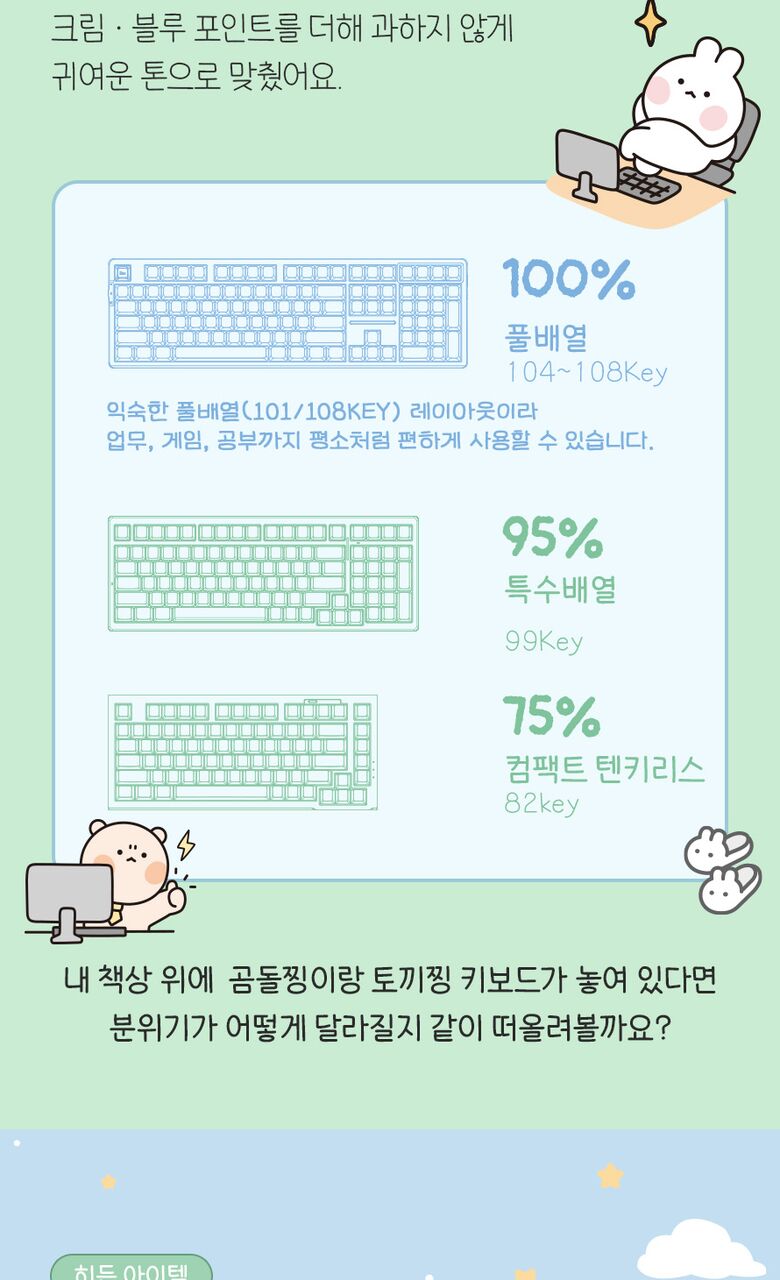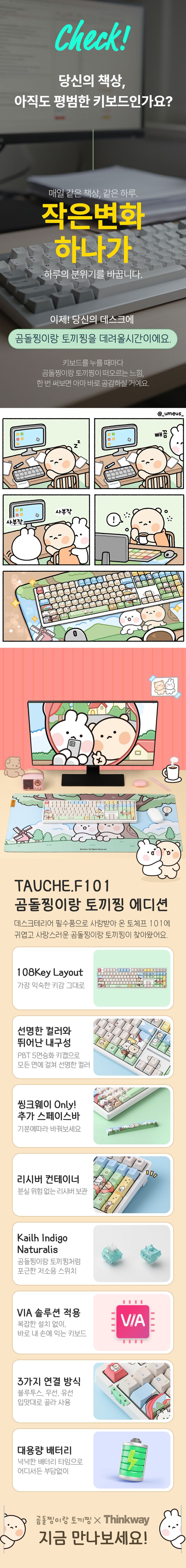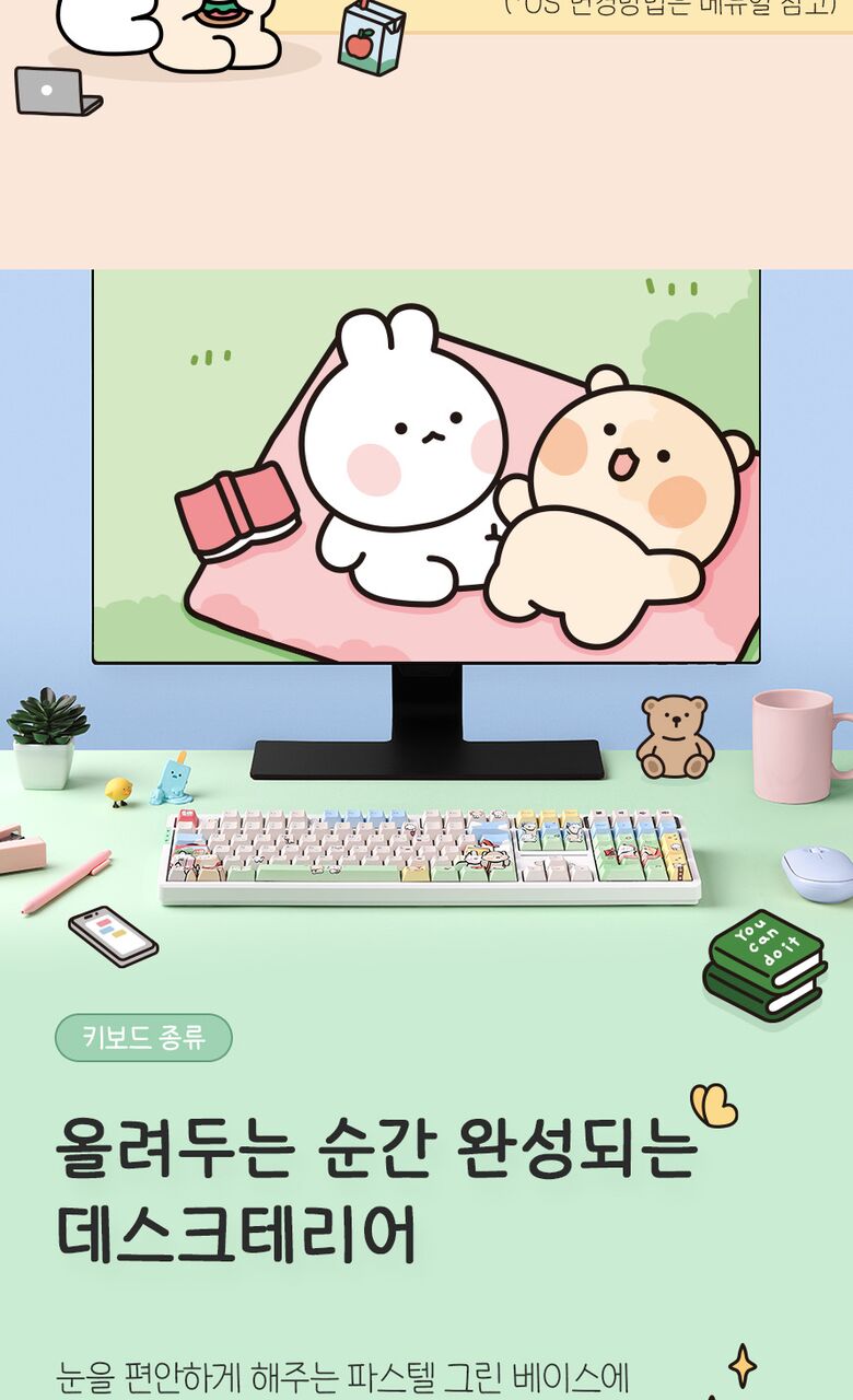 [씽크웨이]씽크웨이 토체프 101 108키 기계식 유무선 키보드 곰돌찡이랑 토끼찡 에디션
