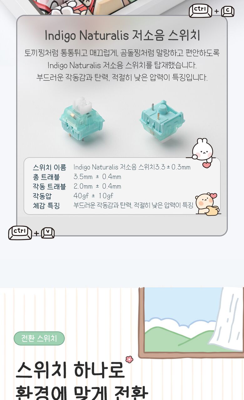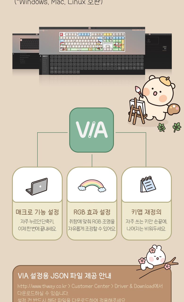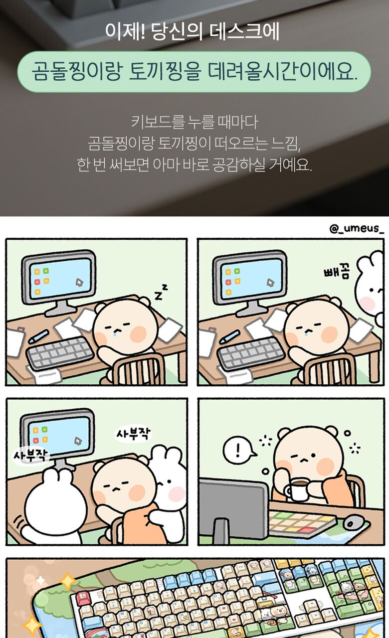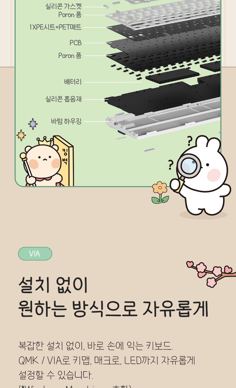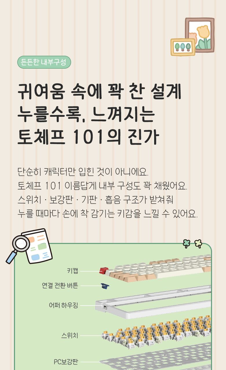 [씽크웨이]씽크웨이 토체프 101 108키 기계식 유무선 키보드 곰돌찡이랑 토끼찡 에디션