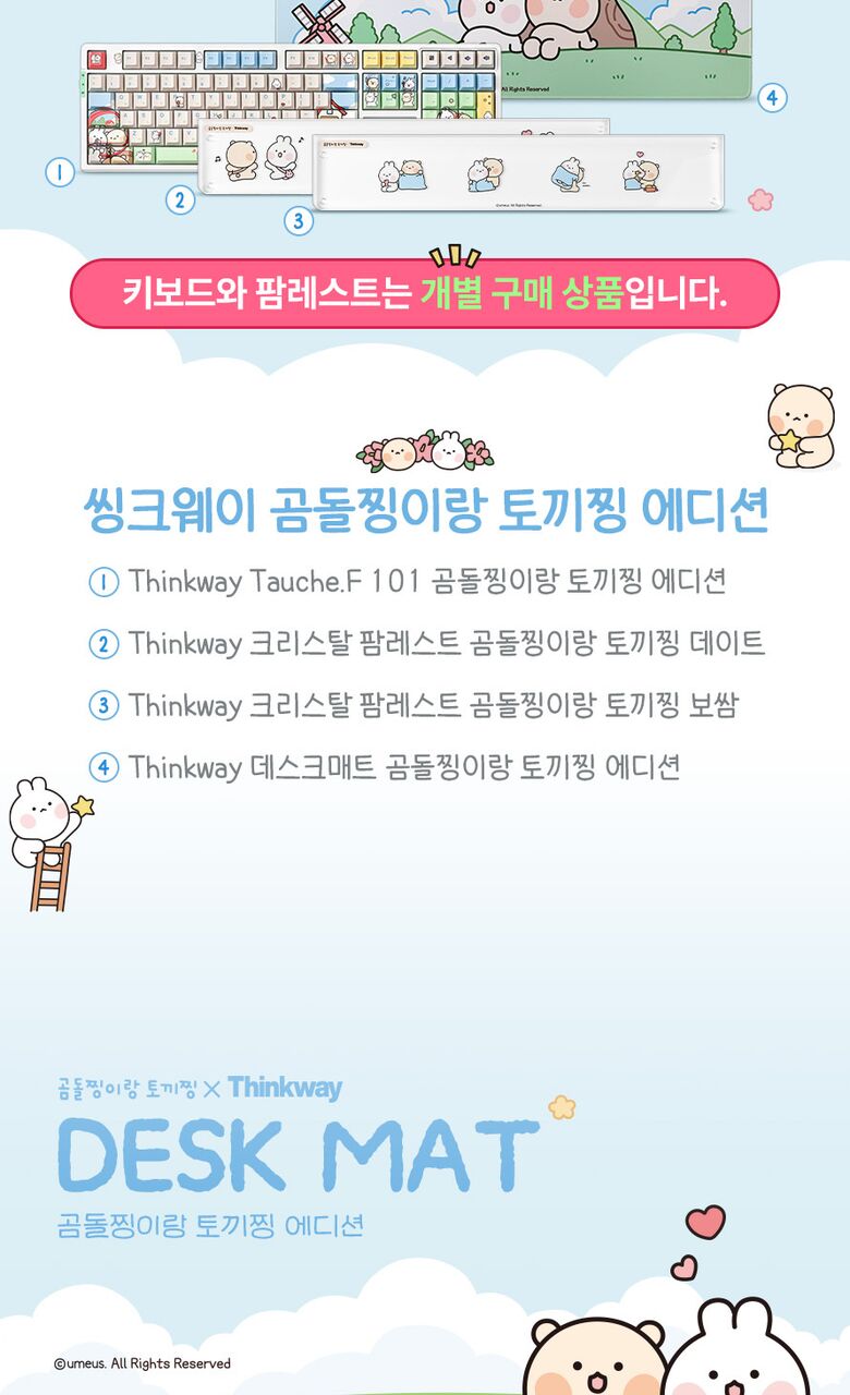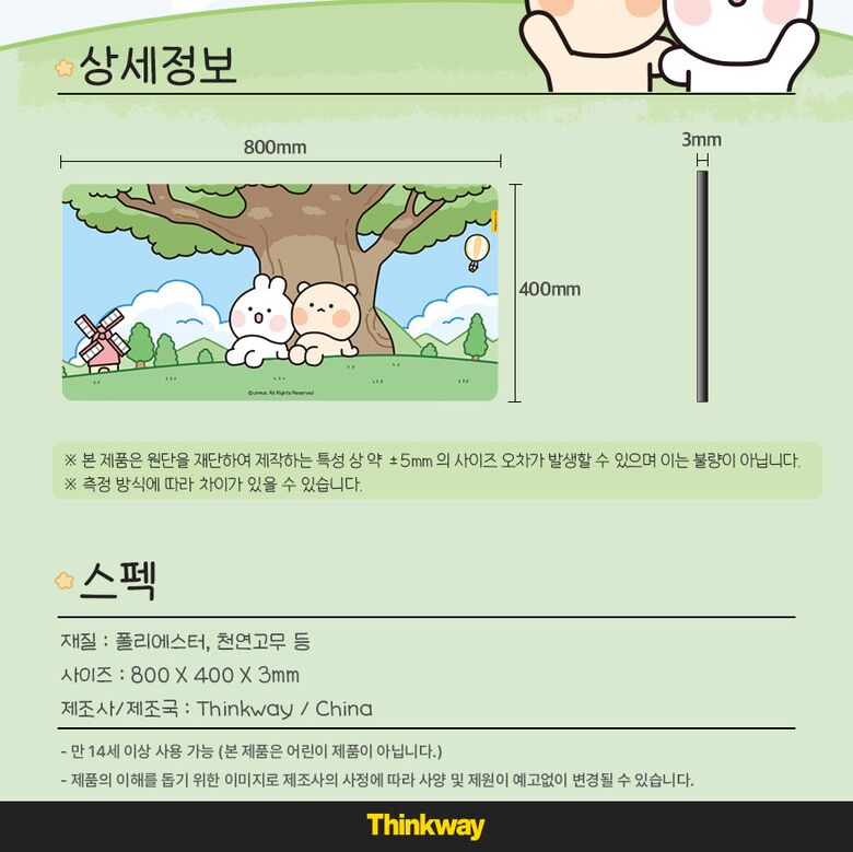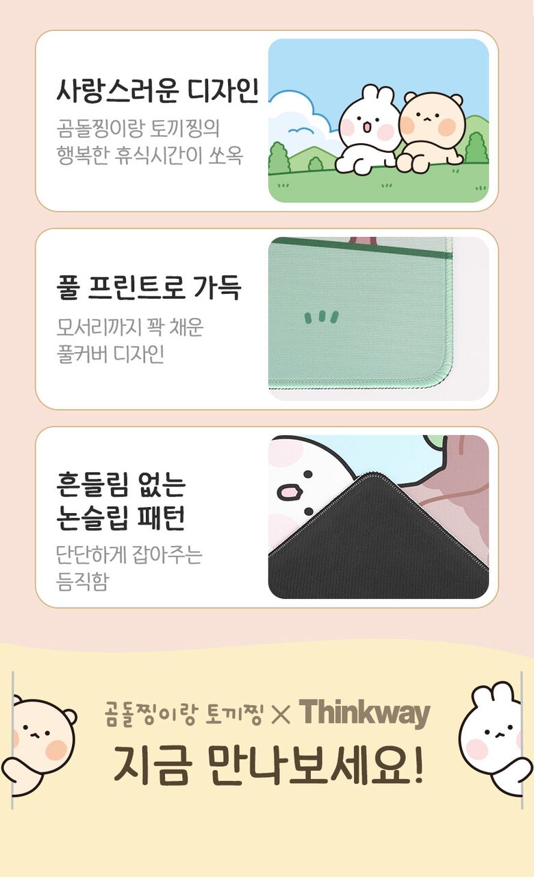 | 품명 / 모델명 | 씽크웨이 데스크매트 장패드 곰돌찡이랑 토끼징 에디션 |