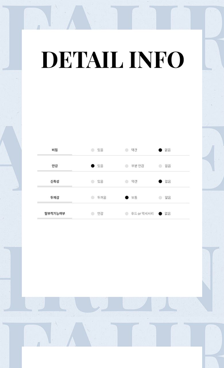 | 제품소재 | 겉감:면37%,나일론63% 안감:레이온50%,폴리에스터50% |