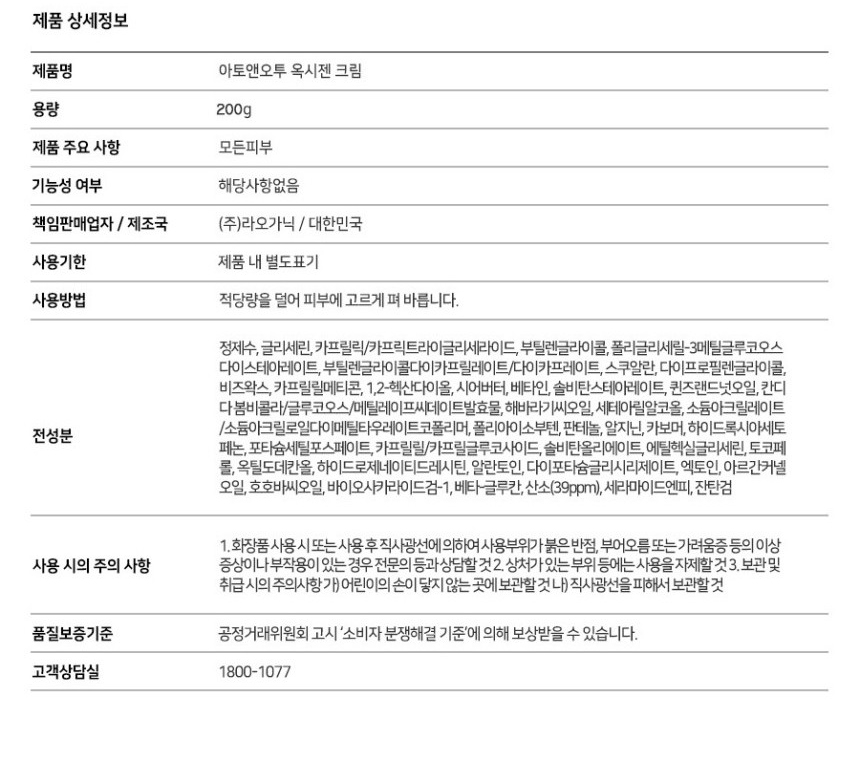 [아토앤오투][아토앤오투] 옥시젠 세라오 크림 200g 2개