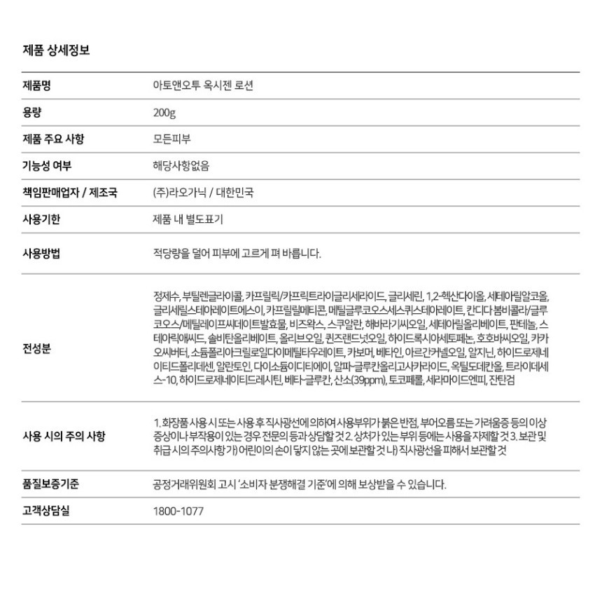 [아토앤오투][아토앤오투] 옥시젠 세라오 로션 200g 2개