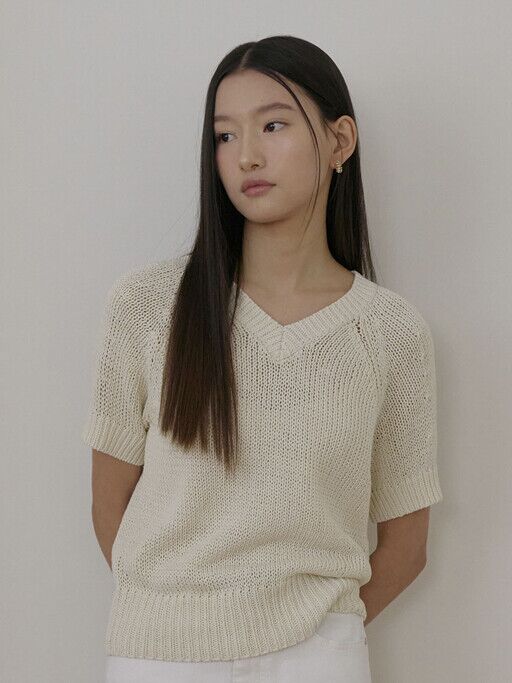 선택3_여성 오버핏 V넥 코튼혼방 반팔 스웨터(EPF2ER2700)