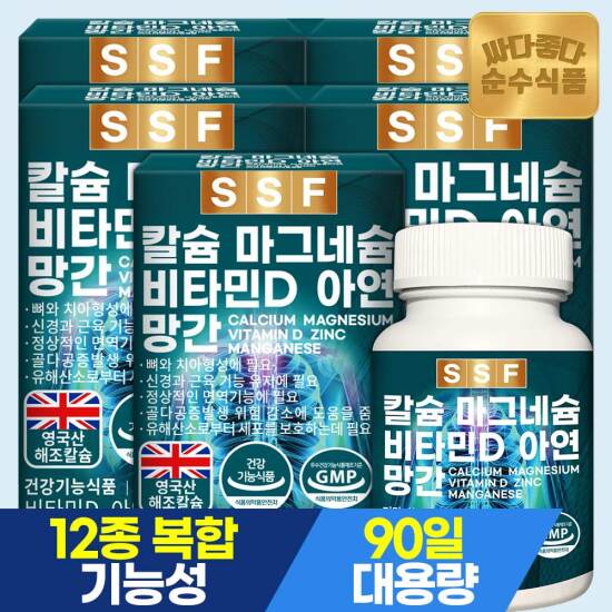 선택34) [순수식품] [단독구성][총15개월분]해조 칼슘 마그네슘 비타민D 아연 망간 90정 3개월분 x 5박스 / 칼마디아 칼마아디