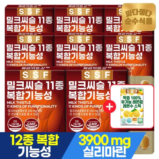 선택6) [순수식품] [4/27~29, +레몬즙14포]밀크씨슬 30정 x 8박스 / 실리마린 밀크시슬 아연 셀렌 엽산 비오틴 간건강에 도움