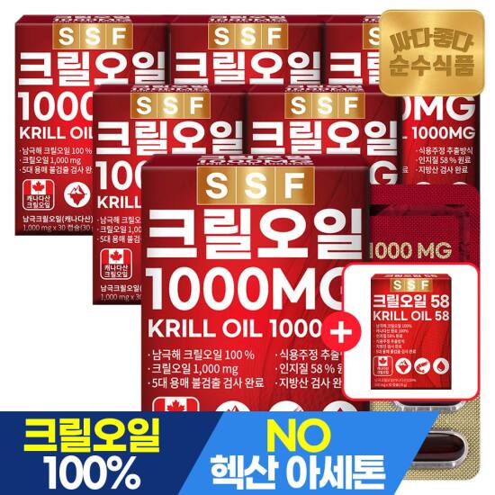 선택32) [순수식품] [4/27~29, +크릴58 1개]캐나다산 크릴오일 1000mg 30캡슐 x 6박스 / 인지질58% 이상원료 크릴
