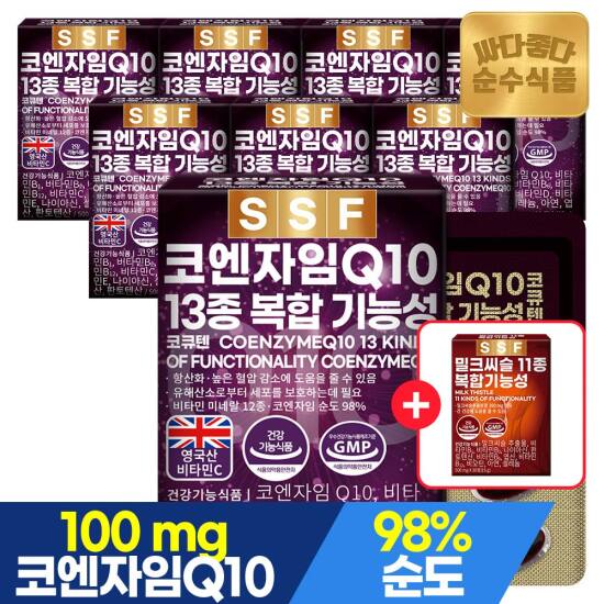 선택20) [순수식품] [4/27~29, +밀크씨슬1개]코엔자임 Q10 코큐텐 30캡슐 x 8박스 / 코앤자임 큐텐 판토텐산 비타민B 항산화