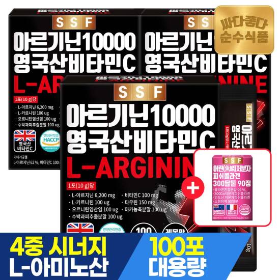 선택28 [순수식품] [4/27~29, +콜라겐90정][총300포]아르기닌 10000 실속형 100포 x 3박스 / L-아르기닌 비타민C 타우린