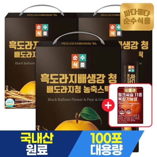선택12) [순수식품] [4/27~29, +밀크씨슬1개][총300포]흑 도라지 배 생강 청 스틱 실속형 100포 x 3박스 / 배 도라지청 농축스틱
