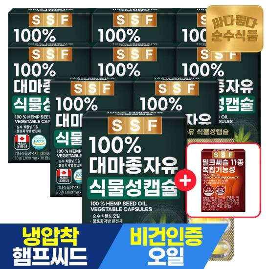 선택15) [순수식품] [4/27~29, +밀크씨슬1개]대마종자유 감마리놀렌산 1000mg 30캡슐 x 8박스 / 캐나다산 햄프씨드 오일