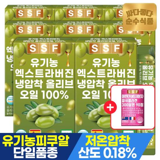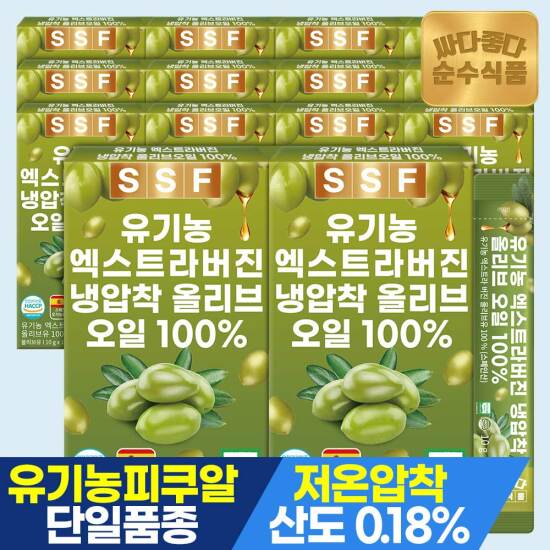 선택29 [순수식품] [4/27~29, +콜라겐90정]유기농 엑스트라버진 올리브오일 100% 14포 x 8박스 / 스페인 피쿠알 품종 냉압착 올리브유