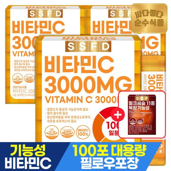 선택11) [순수식품] [4/27~29, +밀크씨슬1개][총300포]비타민C 100% 3000mg 실속형 100포 x 3박스 / 건강기능식품 비타민씨
