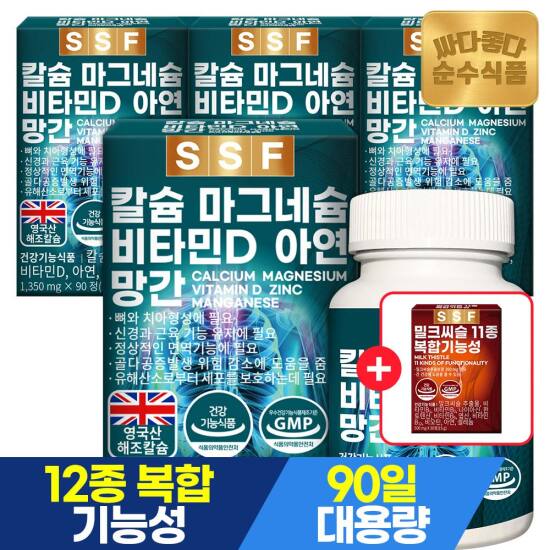 선택9) [순수식품] [4/27~29, +밀크씨슬1개][총12개월분]해조 칼슘 마그네슘 비타민D 아연 망간 90정 3개월분 x 4박스