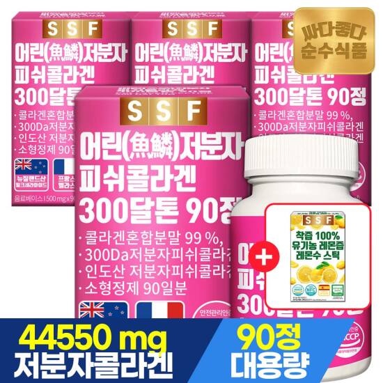 선택3) [순수식품] [4/27~29, +레몬즙14포][총12개월분]300달톤 어린 저분자 피쉬 콜라겐 90정 3개월분 x 4박스 / 히알루론산