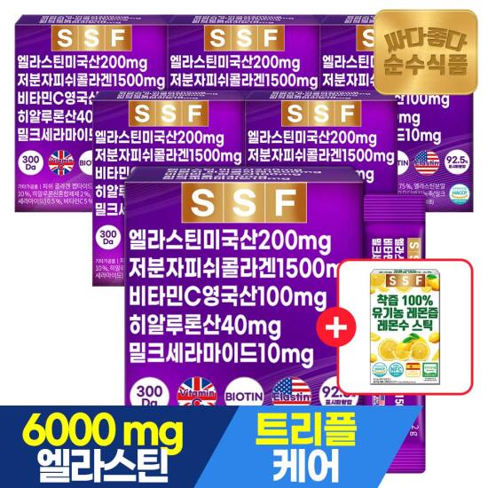 선택5) [순수식품] [4/27~29, +레몬즙14포]먹는 엘라스틴 데스모신 어린 저분자 피쉬 콜라겐 30포 x 6박스 / 히알루론산 비오틴