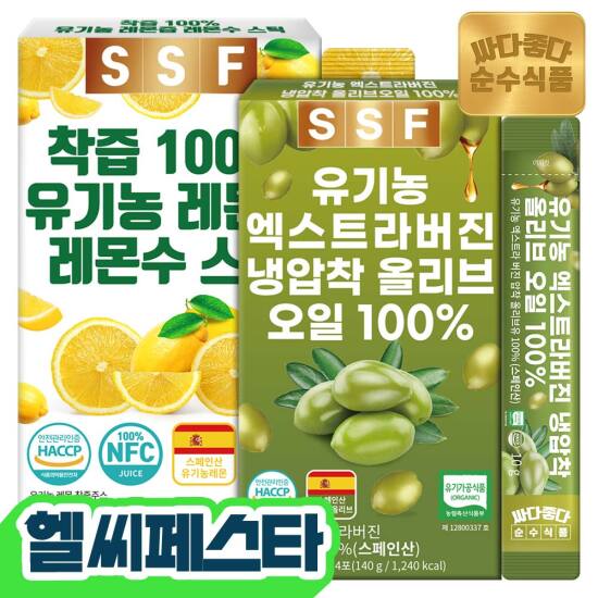 선택2) [순수식품] [한정수량]올레샷 스틱 1세트(유기농 올리브오일 100% 14포X 1박스 + 유기농 레몬즙 100% 14포X 1박스)