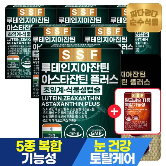 선택16) [순수식품] [4/27~29, +밀크씨슬1개]루테인 지아잔틴 아스타잔틴 30캡슐 x 6박스 / 눈건강 아연 셀레늄 헤마토코쿠스 초임계추출 식물성캡슐