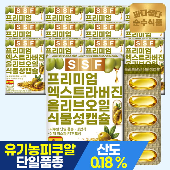 선택43 [순수식품] [단독구성]유기농 엑스트라버진 올리브오일 식물성캡슐 1000mg 30캡슐 x 13박스 / 피쿠알 냉압착 올리브유