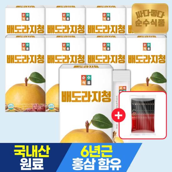 선택33) [순수식품] [단독구성][+홍삼10포]배 도라지 청 스틱 9박스(270포) / 도라지청 진액 도라지차