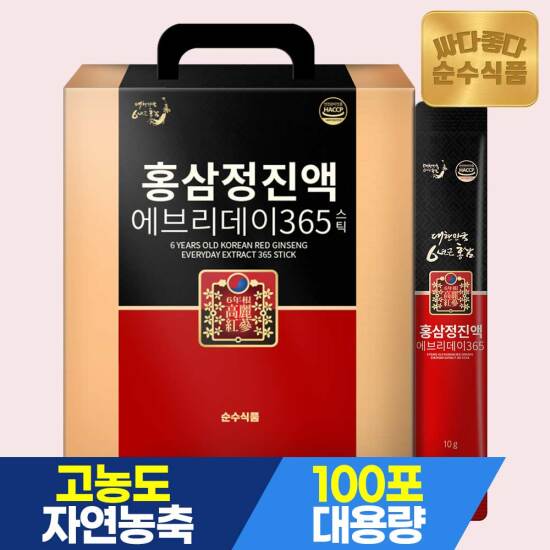 선택47 [순수식품] [비밀특가][총100포]6년근 홍삼정 진액 에브리데이 365 실속형 100포 x 1박스 / 국내산 홍삼 농축액 스틱
