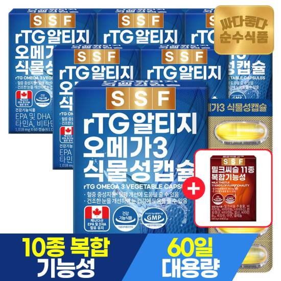 선택8) [순수식품] [4/27~29, +밀크씨슬1개][총12개월분]rtg 알티지 오메가3 식물성캡슐 60캡슐 2개월분 x 6박스 / 비타민D EPA DHA