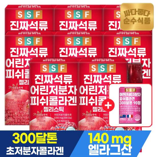 선택31) [순수식품] [4/27~29, +콜라겐90정]진짜 석류 콜라겐 젤리 스틱 300달톤 15포 x 8박스 / 어린 저분자 피쉬 글루타치온 비타민C