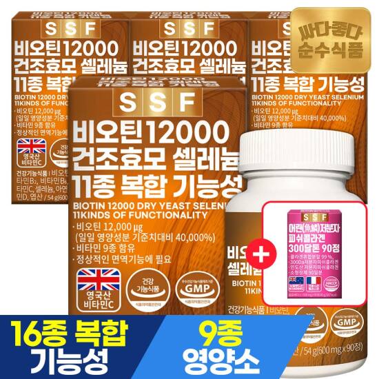 선택27 [순수식품] [4/27~29, +콜라겐90정][총12개월분]맥주효모 비오틴 12000 3개월분 90정 x 4박스 / 건조효모 콜라겐
