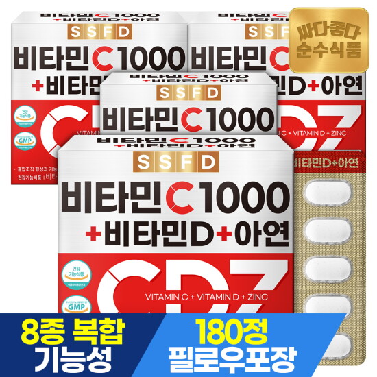 선택70 [순수식품] [총12개월분] 비타민C 1000 아연 비타민D 180정 3개월분 x 4박스 / 비타민CDZ
