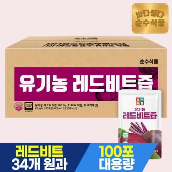 선택63 [순수식품] [비밀특가][총100포]유기농 레드 비트즙 실속형 100포 X 1박스 / 비트주스 건강즙