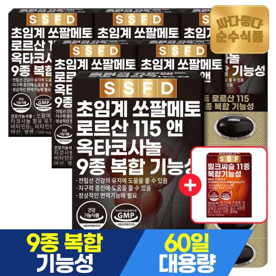 선택19) [순수식품] [4/27~29, +밀크씨슬1개][총12개월분]초임계 쏘팔메토 로르산115 옥타코사놀 60캡슐 2개월분 x 6박스 / 전립선 블랙 마카