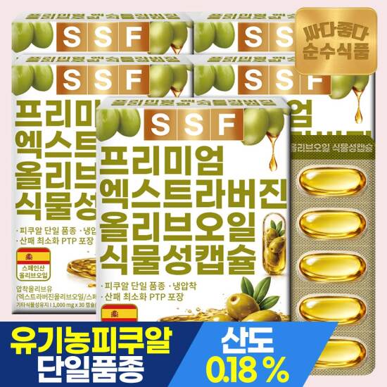 선택65 [순수식품] [비밀특가]유기농 엑스트라버진 올리브오일 식물성캡슐 1000mg 30캡슐 x 5박스 / 피쿠알 냉압착 올리브유