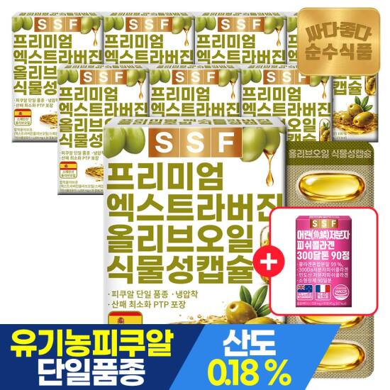 선택30) [순수식품] [4/27~29, +콜라겐90정]유기농 엑스트라버진 올리브오일 식물성캡슐 1000mg 30캡슐 x 8박스 / 스페인 피쿠알 품종 냉압착 올리브유