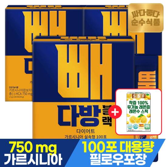 선택7) [순수식품] [4/27~29, +레몬즙14포][총300포]빼다방블랙 커피 다이어트 음료 실속형 100포 x 3박스 / 가르시니아 차전자피